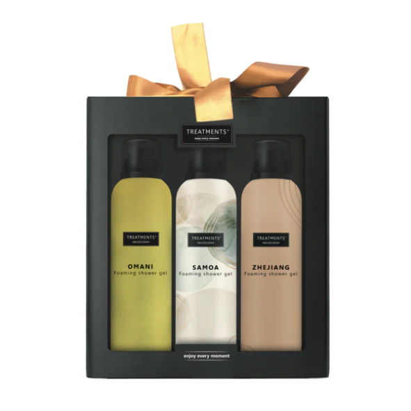 „Giftbox Foaming Extravagance“ siūlo tris skirtingas putojančias dušo želes. Nesvarbu, ar putojančią dušo želę naudojate ryte pabusdami, ar vakare atsipalaidavimui, dabar turite tobulą aromatą bet kuriuo paros metu, akimirksniu paversdami jūsų vonios kambario atmosferą prabangia SPA patirtimi.