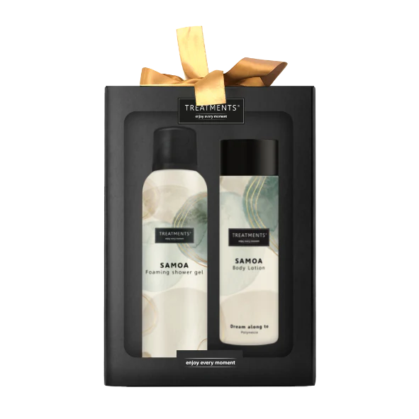 Ši „Samoa“ kvapų linijos dovanų dėžutė „Tenderness“ alsuoja švelnumu – kreminis, maitinamasis putojantis dušo želė ir drėkinamasis kūno losjonas kartu puoselėja jūsų odą. Šis tobulas duetas optimaliai rūpinasi jūsų oda, palikdamas ją šilkiniai švelnią ir elastingą.